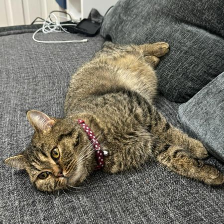 Found outside our home on our street, looking for food and looking a bit lost. Does not look like other cats from around this area. No collar when found, was added later.