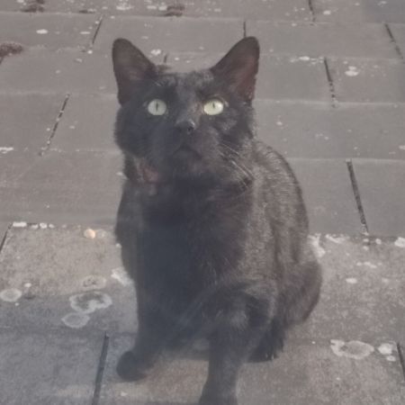 Black cat, regularly showing at my window in the evening. Vauxhall Park area.