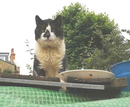 My friend hasn't seen Him for the last couple of days, after a tabby appeared on the shed roof & starting eating the food, so My friend has been dropping biscuits over the fence for Him.