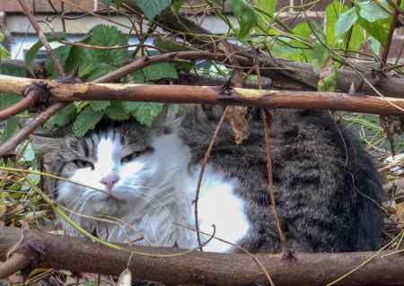 Has been hanging around my garden and sleeps on top of a shed roof.