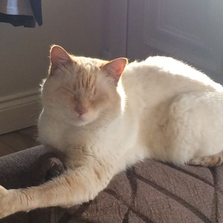 Beautiful blue eyes,white body beige ears and tail, loves chicken, tuna. Although an unneutered Tom, has many local haunts and always comes home, it’s just vanished no sightings from many of his usual places