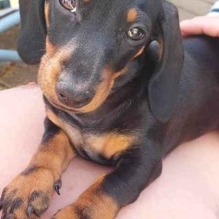 Small black & tanned puppy, brown paws, brown chest, brown dots on eyebrows. Went missing from Altonhill, Kilmarnock and escaped over into john walker Estate on 27/06/23.