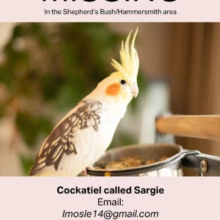 This lost Cockatiel Bird was last seen around Hammersmith Greater London W6
