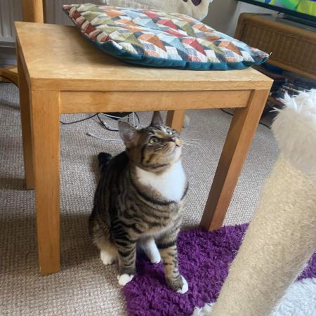 Tabby cat called marble and nickname marbs and 4 years old from beaune close new duston northampton, he escaped from back garden underneath gate lost tracker by back gate and mirco chipped and neutered and very friendly and when meeting new people very nervous. Missing since tuesday 20th aug 2024