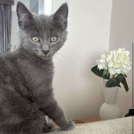 all grey intact 10 month old male named ash. Really friendly but has only ever been outside yesterday for the first time and has not returned.