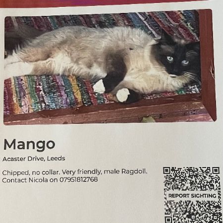 This lost Ragdoll Cat was last seen around Garforth, Leeds West Yorkshire LS25