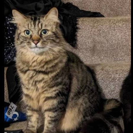 Louis is a fluffy long hair tabby with bright green eyes. He was wearing a blue velvet collar with crystals when he went missing. He is chipped but there is no tag on the collar