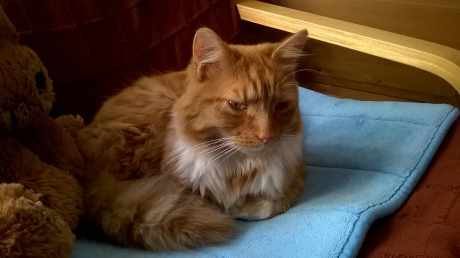 Our cat ginger is a rescue cat, around 4 years old. He is neutered and micro chipped, so if you find him, please take him to a vet, to be checked. He went out in the early hours of sunday morning {around 5am} as normal and has not returned. He may be locked in a shed or garage as he loves sleeping in our greenhouse, so please check outbuildings that you were in on sunday. He is chatty , especially when he first comes home and in asking for his dinner. He has recently had a viral infection, which affected his tongue and is still on medication, so may be reluctant to eat. He hates dogs, sorry, is very independant and doesnt like being picked up. He is ginger and cream, with a white ruff , with a distinctive ginger splodge in the middle. Large whiskers and white paws, with a very pink nose.
