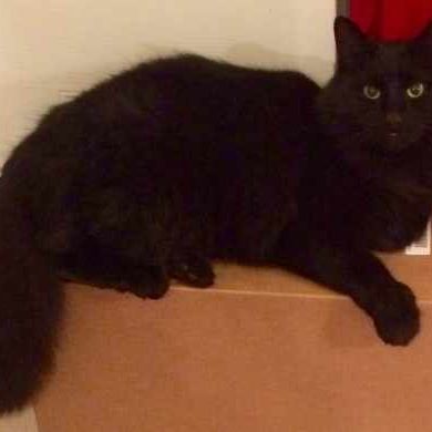 Sisi is a large, black, neutered male, domestic longhair (although he looks as if he may be a Norwegian forest cross) and as at 2020 will be around 13 years old (although lost in 2016 at around 9 years of age) He has a kind of mane with a brownish tinge to it around his neck. He is very furry and friendly, although he doesn’t really like being picked up and will turn himself over in your arms so he’s upside down. He is microchipped, so his identity can be verified if you take him to a local vet or message me. He has quite a long distinctive face and sometimes leaves his tongue sticking out after he’s washed. He knocks on doors if he wants you to let him in (or out)