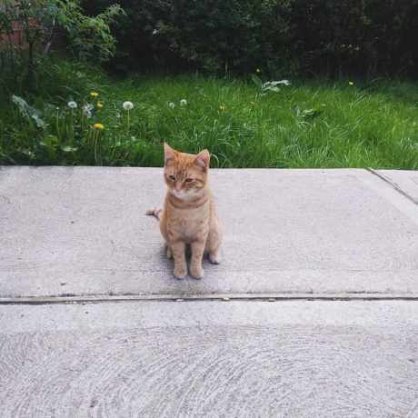 Green/brown eyes with ginger spots and stripes and has rings of ginger around his tail, he is a friendly cat but will be timid around strangers, he has never wandered further than the garden and always comes when food is shaken and calling him