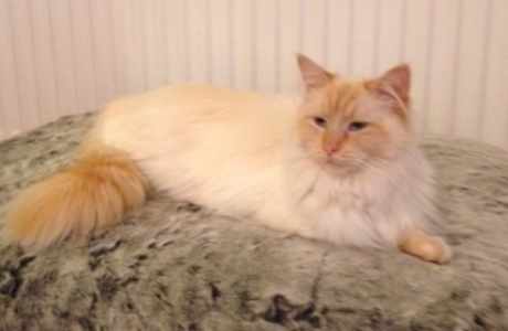 Oliver is a rag doll cross breed he is medium build with long hair, he is mainly white with ginger tips on his ears and tail . He was wearing a red leather collar with a tag and a diamonte letter O and a crown Oliver is very friendly. He was last seen early hours of Friday morning