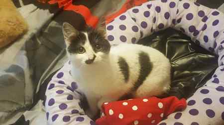 She's recently been spayed so has her side shaved & you can see the wound healing beautifully, she is mainly White but has a few black/grey splodges, 1 being just to the side of her nose.