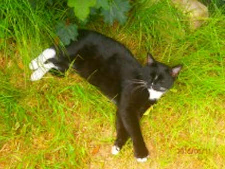 Percy is very friendly, likes to stretch out sleeping al day and hunt at night.