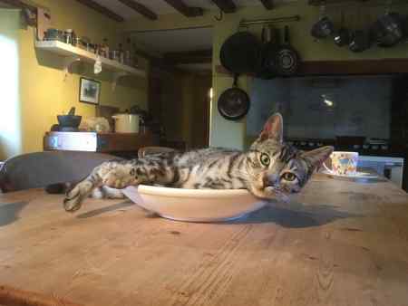 He is soppy, small and friendly, always claiming to be hungry!