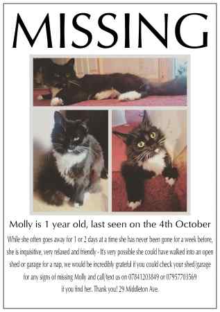 Report your missing cat on our Cat Registers for free and we will do a pet match to display any cats which match in the area. You can also create and print your lost cat poster. Report a missing cat here