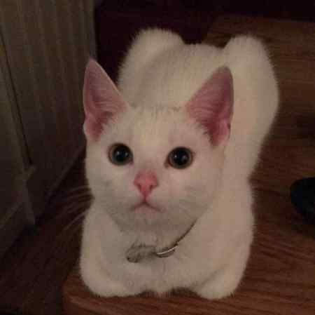 Pure white with pink ears. She's completely deaf