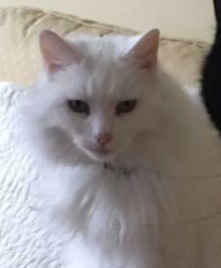 Eden- Missing from Radbrook area of Shrewsbury. Went out at around 9pm, got spooked by a stray cat and not been seen since. New to area so could be anywhere by now. Very striking pure white, yellow eyes , bushy tail wearing a yellow collar with a bell when went missing.
