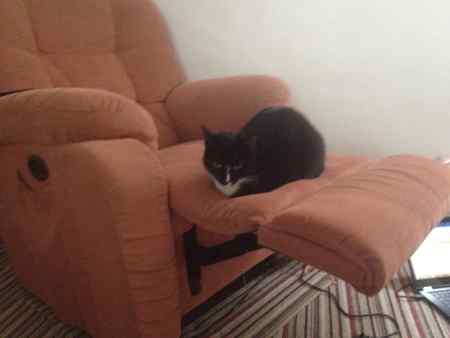 Cat is called Waldo - is black with white parts. He is nervous at times, but can be called through putting your hand out.