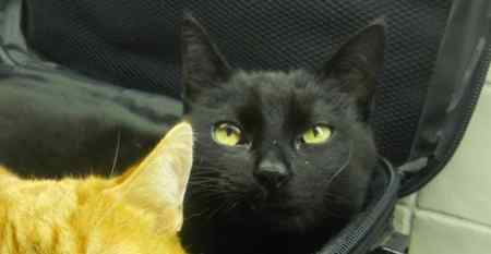 very friendly black cat. he has bad eyesight so we think he is lost. he can be picked up and held as he is very friendly, responds to the name Gee Gee.