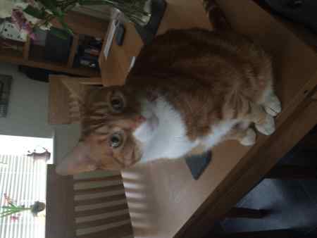 He is very timid and will hiss if scared. He doesnt like to be picked up. Please phone if you see him. We really want him home. Thanks