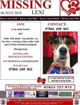 This lost Jack Russell Dog was last seen around Hinckley Leicestershire LE10