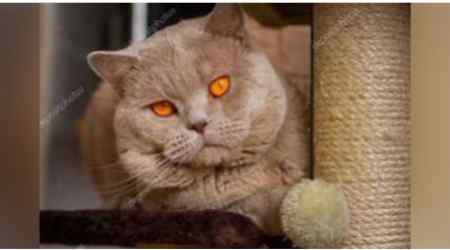 British shorthair female, light beige / lilac with orange eyes, she has a very grumpy looking face. She is not used to being outside and is a nervous cat most like to run away if approached