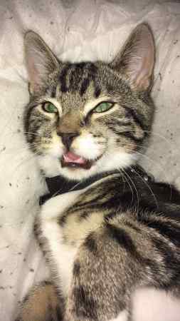 Tommy would be one now un-neutered kitten sadly not chipped wearing a blue collar