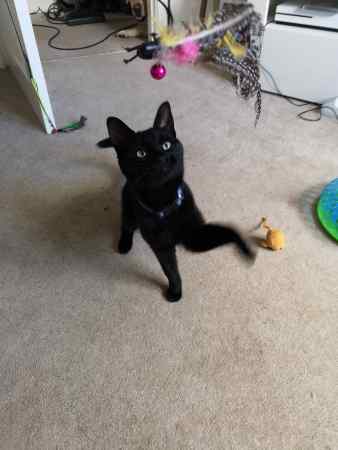 Small female, all black. Last seen with pink reflective collar with bell on. Answers to Leta or Leelee