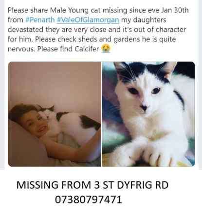 This lost Domestic Short Hair Cat was last seen around Penarth Cardiff