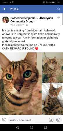 This lost Bengal Cat was last seen around Abercynon Mid Glamorgan CF45