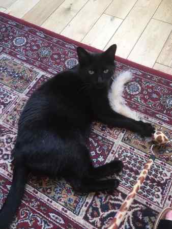 Disappeared from garden late at night. Had been preferring to stay out all night but would come in every morning to sleep all day. Doesn’t normally venture but very scared of other cats and dogs so has possibly been scared out of his territory. He doesn’t like fish and is fussy with food, doesn’t like being picked up but has a loud meow and us quite timid although can be very affectionate.