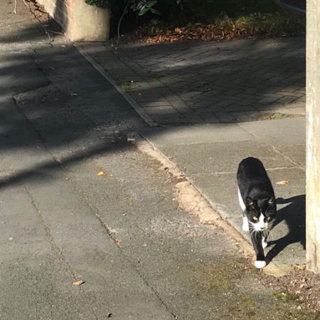 Bob is a friendly black and white cat. He is microchipped but doesn’t wear a collar. His left front leg is mainly white and right front leg mainly black.