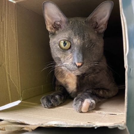 Her nose is grey with a symmetrical butterfly shaped ping area in the centre.