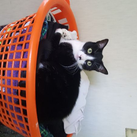 Felix is very friendly but timid,he has an almost white front leg and a black smudge on his nose