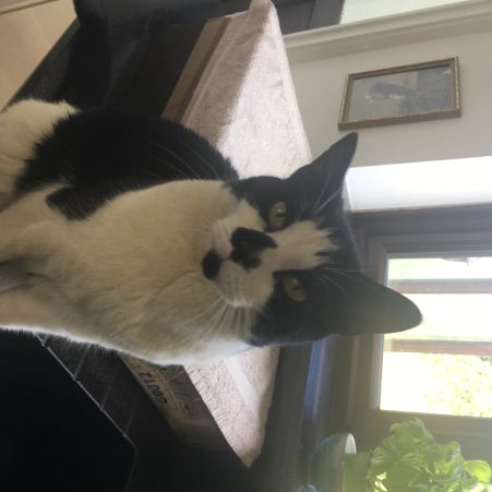 Black and white cat. Black nose and mouth