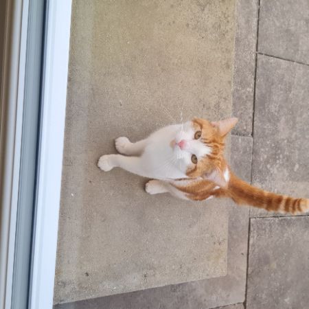 Young ginger and white entire tom cat. Clearly lost. In good health, clean and hungry.
