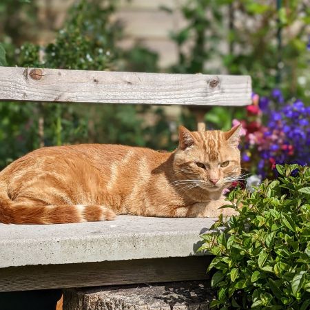 Cat has been coming into our garden for a few months he is very timid but not feral. Seems like he is lost he doesn't leave our garden now and lives in the gazeebo. Can't get any closer than 6 inches.