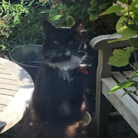 Seen in garden about 9 days ago.Thought it was visiting or passing through.I’ve never seen this cat before, I thought the owners might have moved into the area recently.Seemed very chilled and used to being outside.Since then the cat hasn’t left my garden and I know it has been sleeping out all night on the fence.It is being looked after and allows me to stroke.