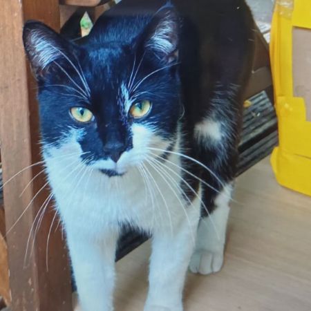 Friendly but a bit nervous, He turned up in the garden a few weeks ago and is is being looked after while we try to find his owner/s.