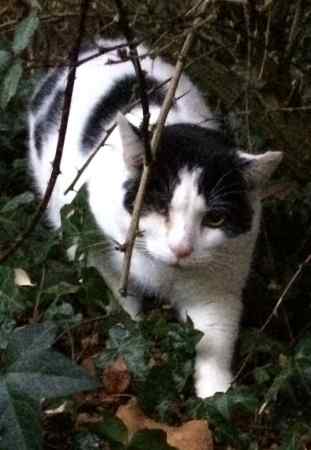 We moved house at the end of August 2016 and occasionally saw this cat in the garden. Recently told by a neighbour it is a stray/feral who was living in our garden for a while. It has been coming everyday into our garden since mid November. It appeared very hungry and so we have been feeding it and it is looking much better. Concerned it may be someone's lost pet, or a local cat who is an opportunist.No collar. Cat looks like it has a blind right eye. Yellow left eye. Will try to get it to a vet for scanning but may be impossible due to timid nature.