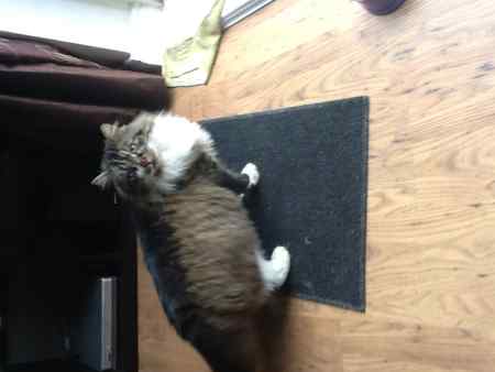 Very striking long haired cat mainly tabby and white with black blaze along head to tail. Long tufts of fur in ears. Seems to have grown since I have been feeding him so may be juvenile. Very friendly but scared of strangers. Seems used to children. Lovely natured and playful. Has been in the area for over 6 months and no report of missing cat, checked local vets and rescues too. no microchip but has been neutered. Need to find owner or good home as can not keep. Would make lovely pet. Putting on Cat's Protection site with Walsall Branch.