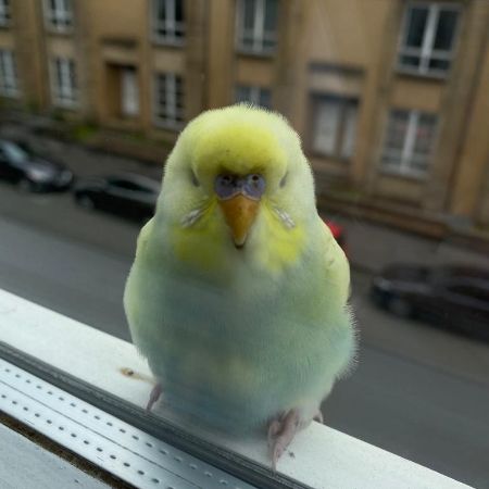 This wee budgie was at my daughters flat window for a while. It flew away before they could try to get it.