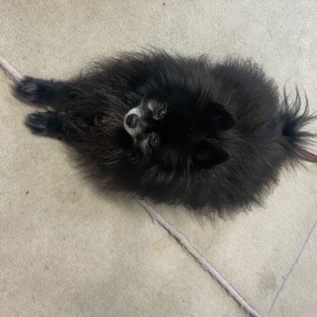 My little dog ninja is black , very old with a greying mouth. He is blind . He is very fiesty and is a very fluffy Pomeranian