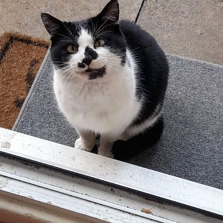 Black and White Male Unneutered, not chipped. Previous stray who I have taken in. Only recently began to trust me. He has fur shaved off from LHS of abdomen and under neck as he recently had a scan and is due back at the vets this week. He is feisty and very wary of people.