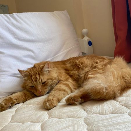 Leo is a very large ginger cat. Our beautiful boy has a massive bushy tail. We live in Betchworth on the river mole.