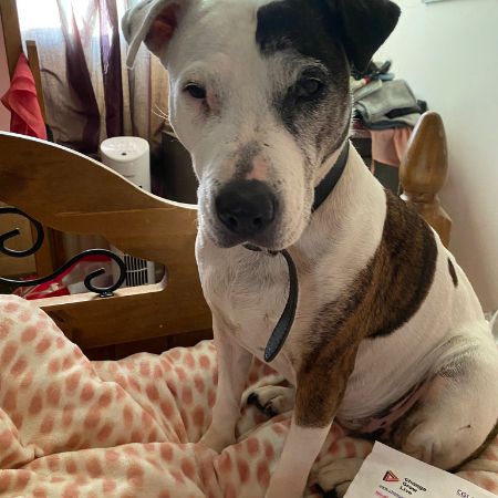 Mia is white with brindle patches over her body left eye and ear and bum with white tipe on tale and feet and she such a loving girl she was stolen Birmingham handsworth area from Herbert street at 12am saterday night Sunday morning