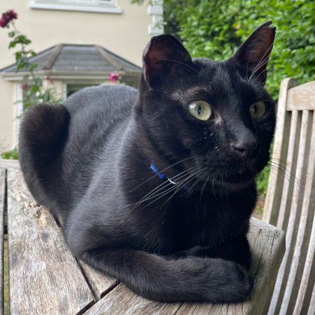 His name is Zeytin and is black. 1 and a half years old and has a distinctive low pitch meow. He has a dark blue collar and microchipped. He went missing on the evening of Saturday the 9th of July. He was last seen along the Reigate Hill end of Raglan Road, Surrey.