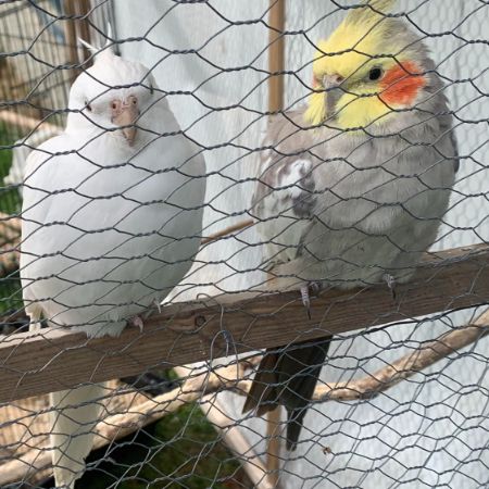 I lost 2 cockatiels during the extreme wind on the 6th of October. One cockatiel is fully white no marks or anything and the other is grey yellow white with red circle cheeks.