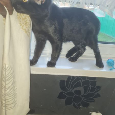 Hello my cat kilo has missing since late night at 16 September and is black with green yellowish eyes and a white spot on his back.