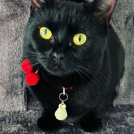 She is all black, usually friendly, on. The smaller side. Last seen wearing a high vis collar with a bell on it.